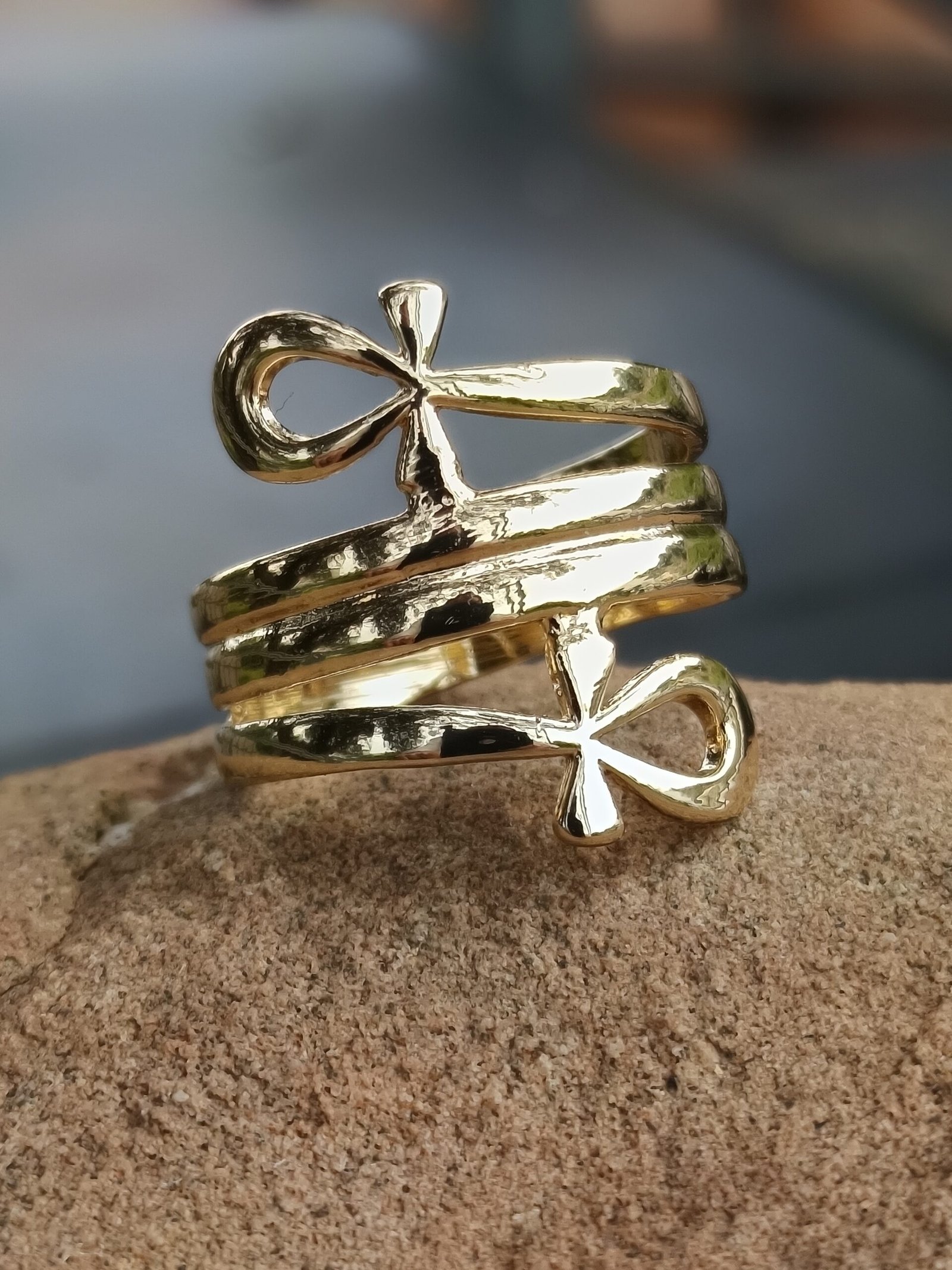 El Anillo del Ankh es una joya que captura la esencia del Antiguo Egipto en un diseño contemporáneo y elegante. Inspirado en uno de los símbolos más poderosos de esta civilización, este anillo no solo adorna, sino que también conecta a quien lo lleva con la energía eterna de la vida y la protección divina.