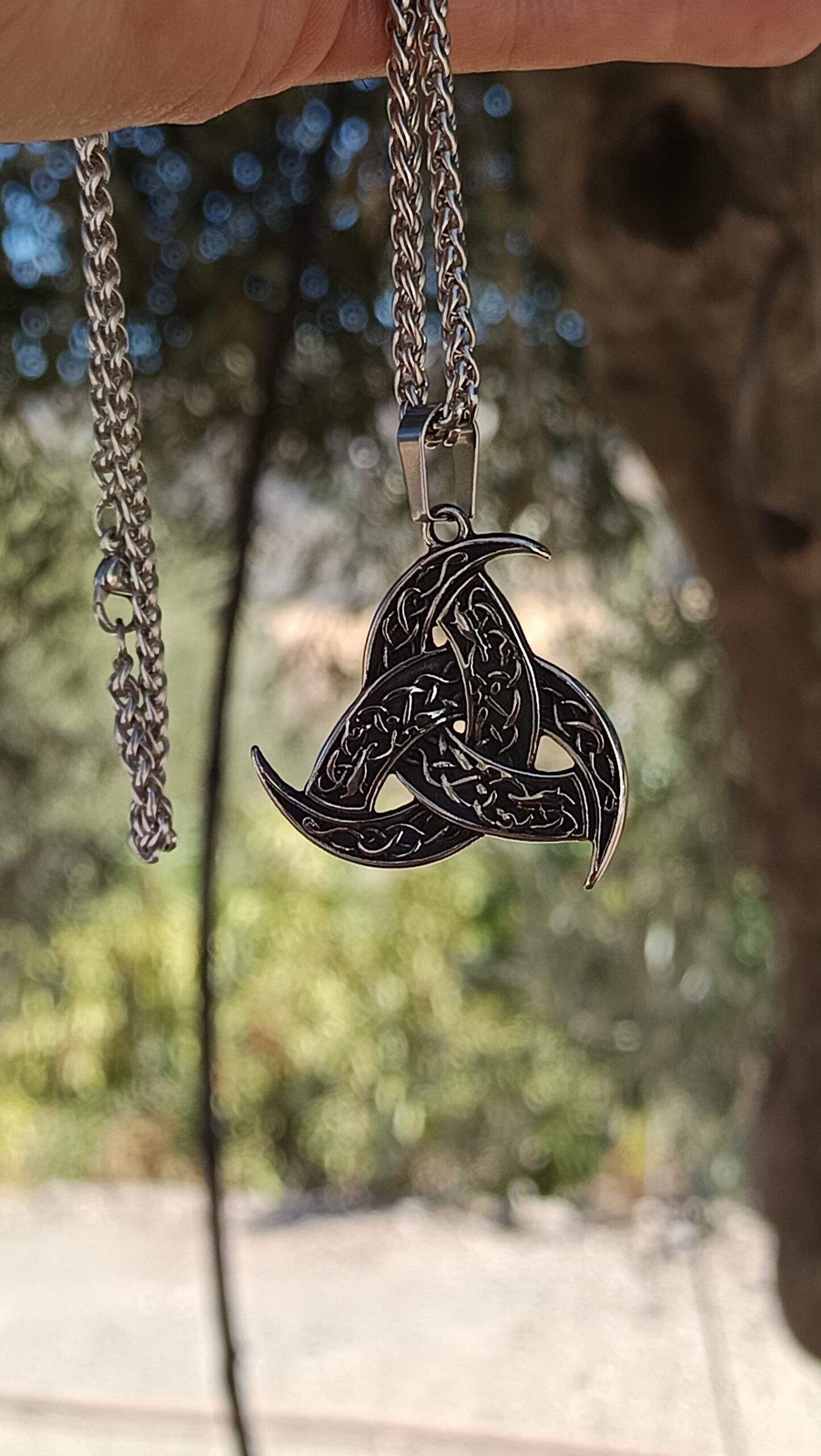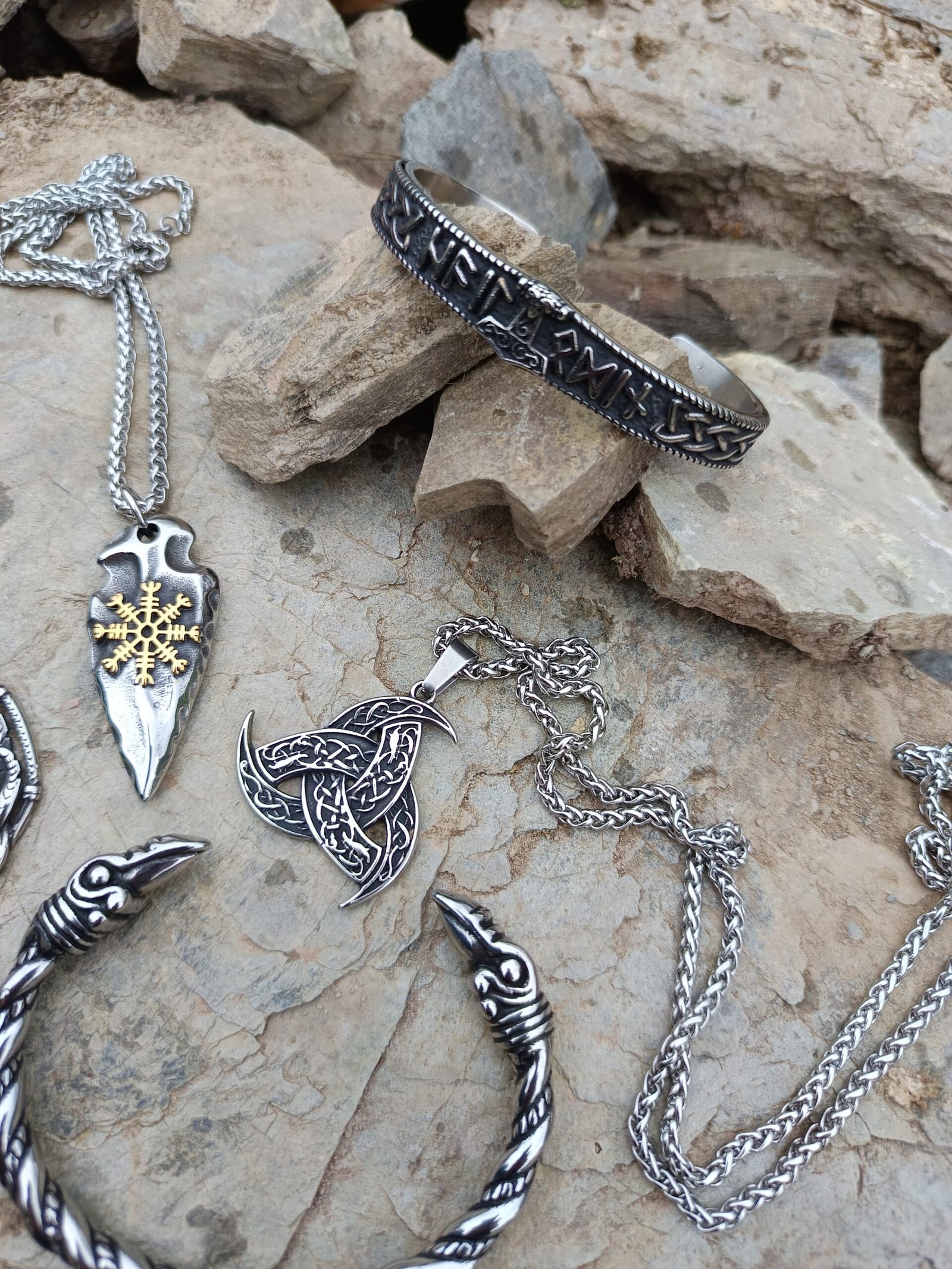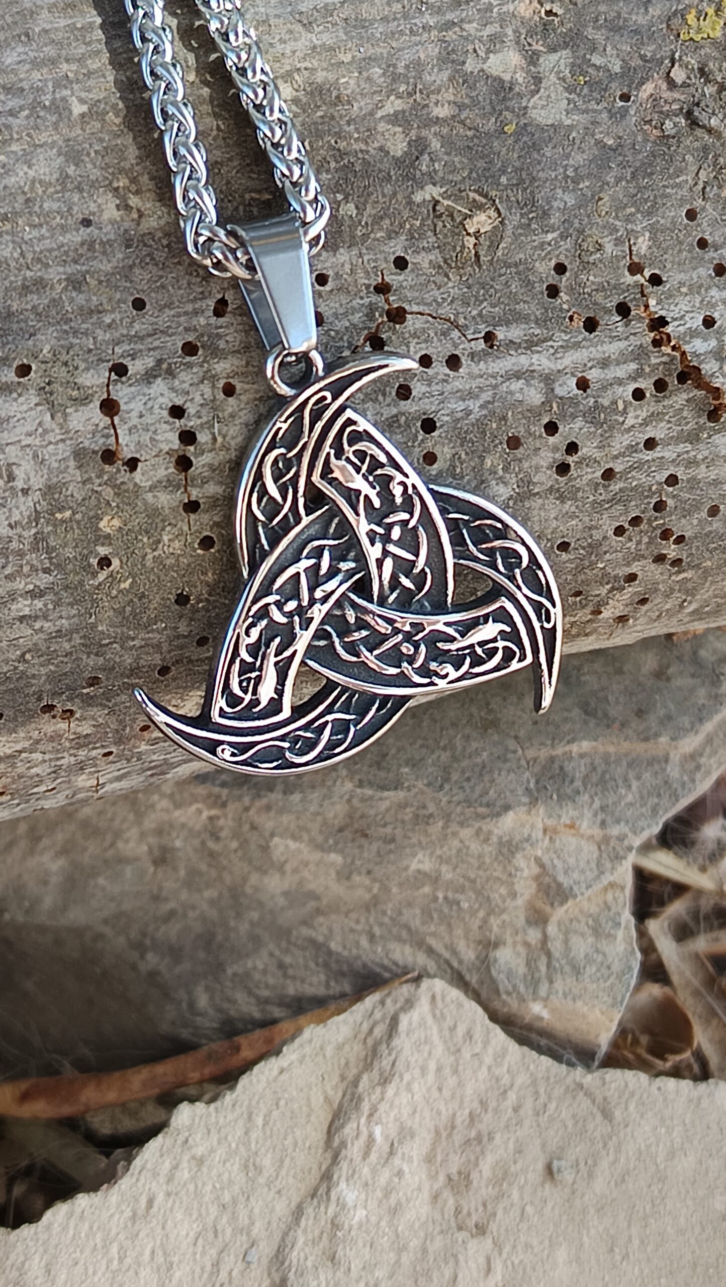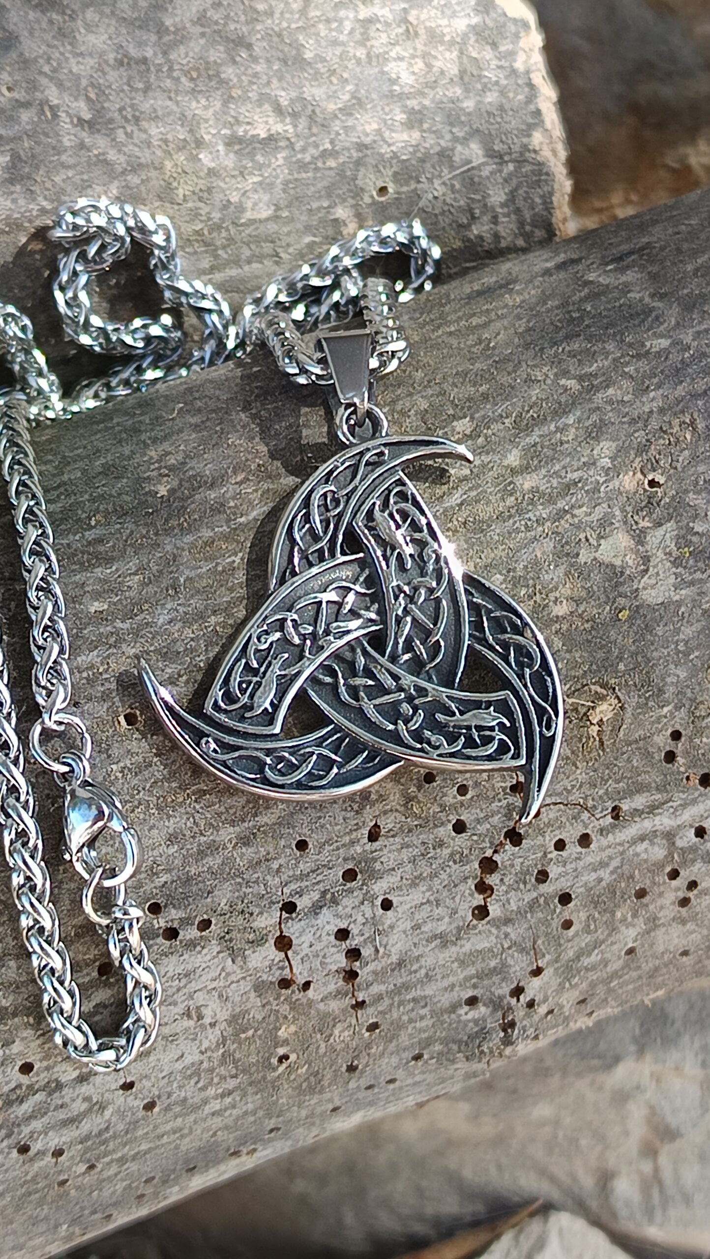 Fabricado en acero inoxidable de alta calidad, con acabado en plateado brillante, este colgante vikingo garantiza resistencia y durabilidad. La cadena plateada de 60 cm aporta comodidad y estilo, mientras que el colgante, de 3.5 x 3.4 cm, es ligero pero imponente, ideal como joyería nórdica para hombre y mujer.
