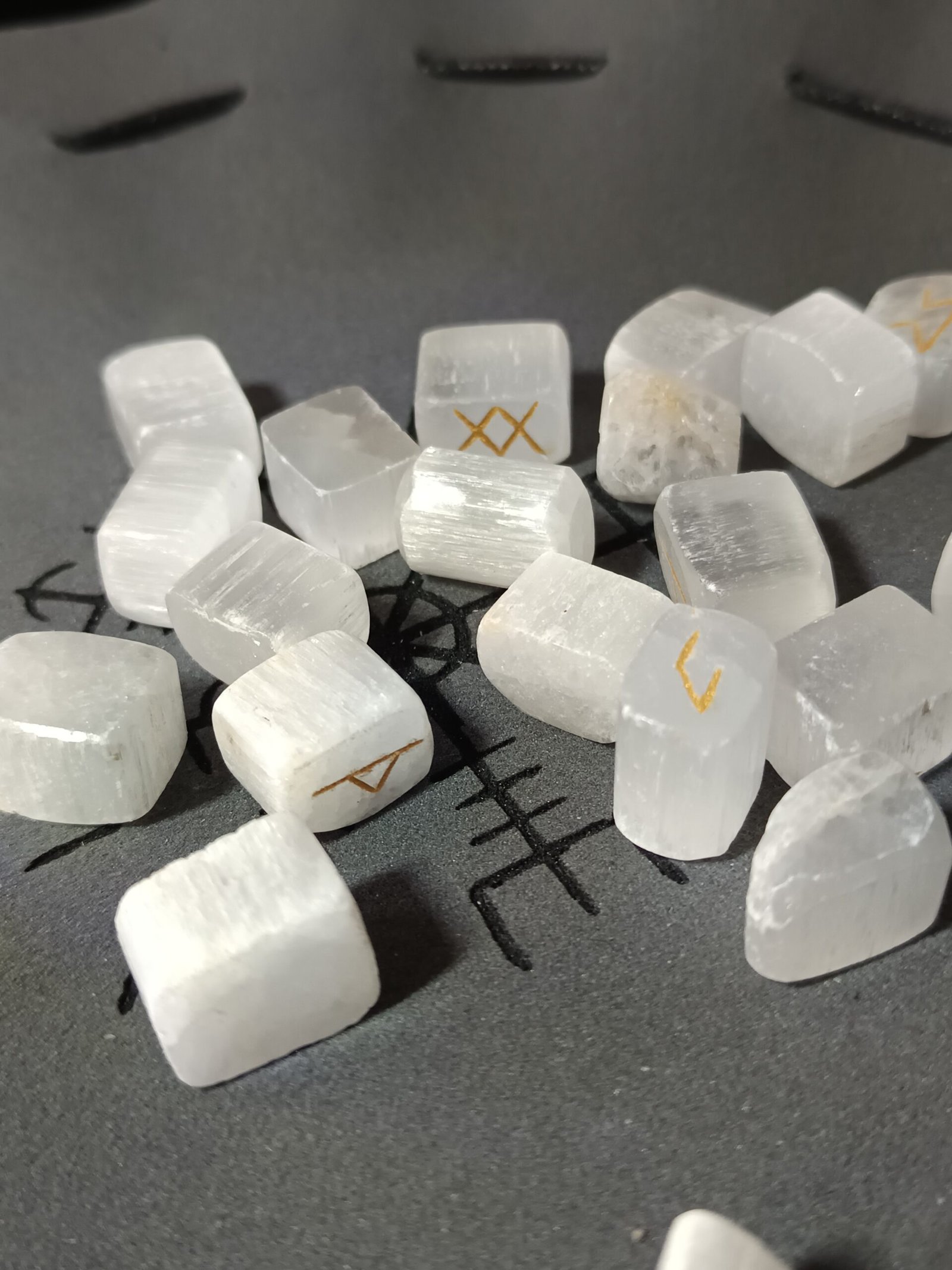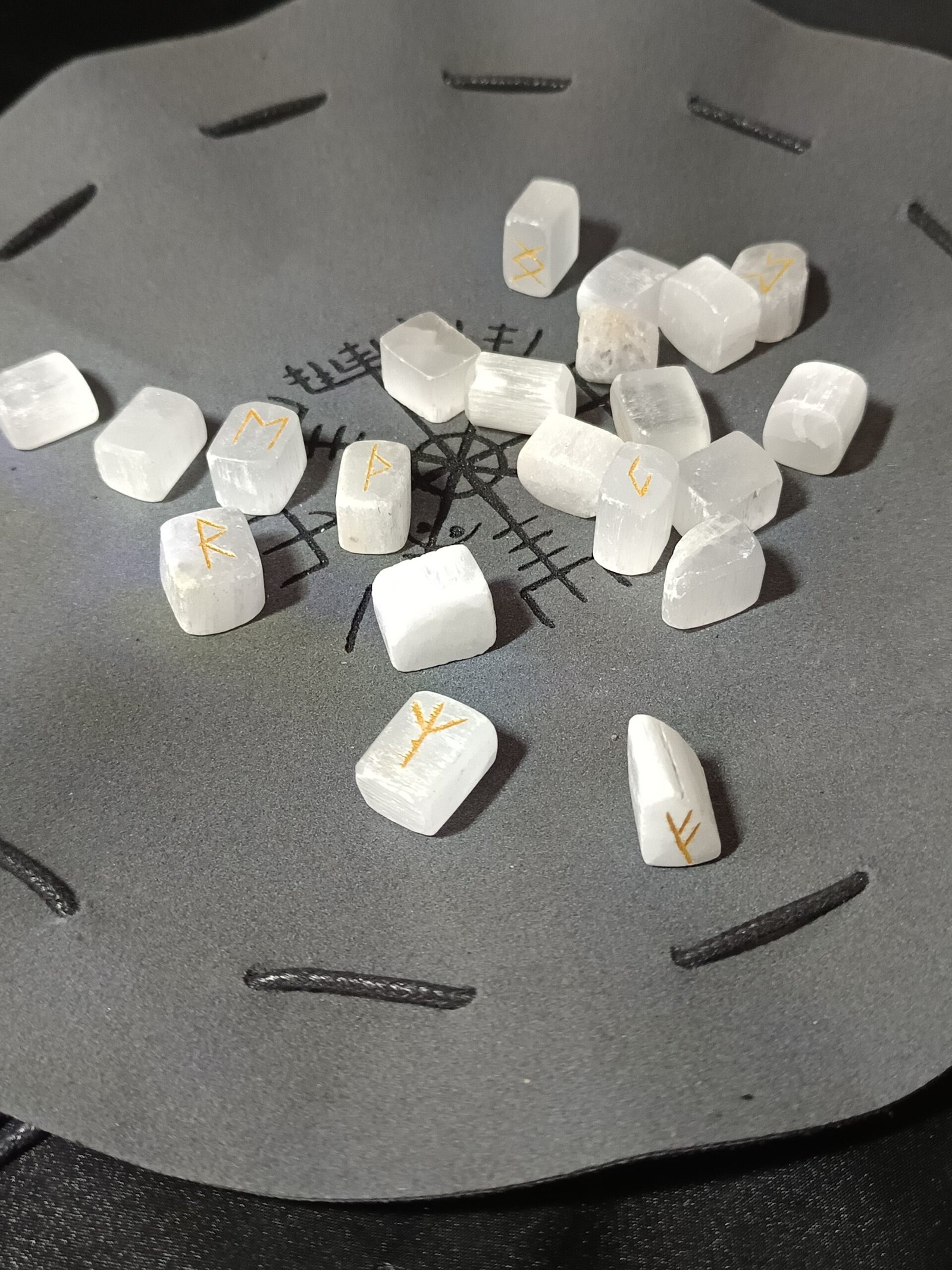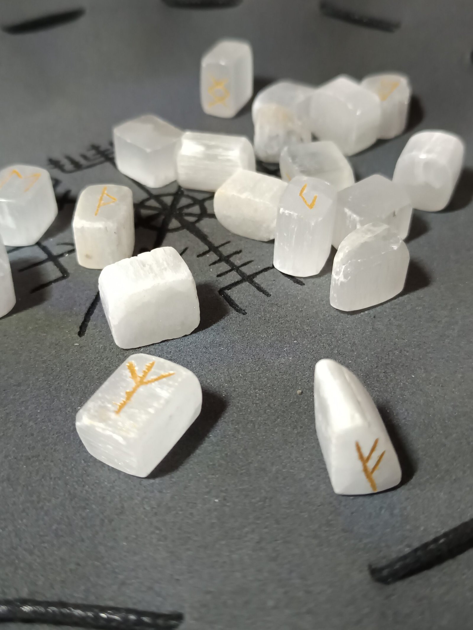 Usar runas vikingas de selenita es como sostener un fragmento de luna entre las manos.